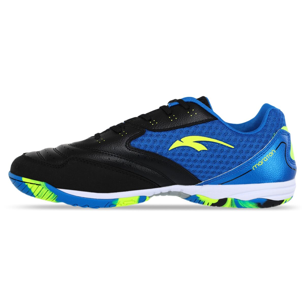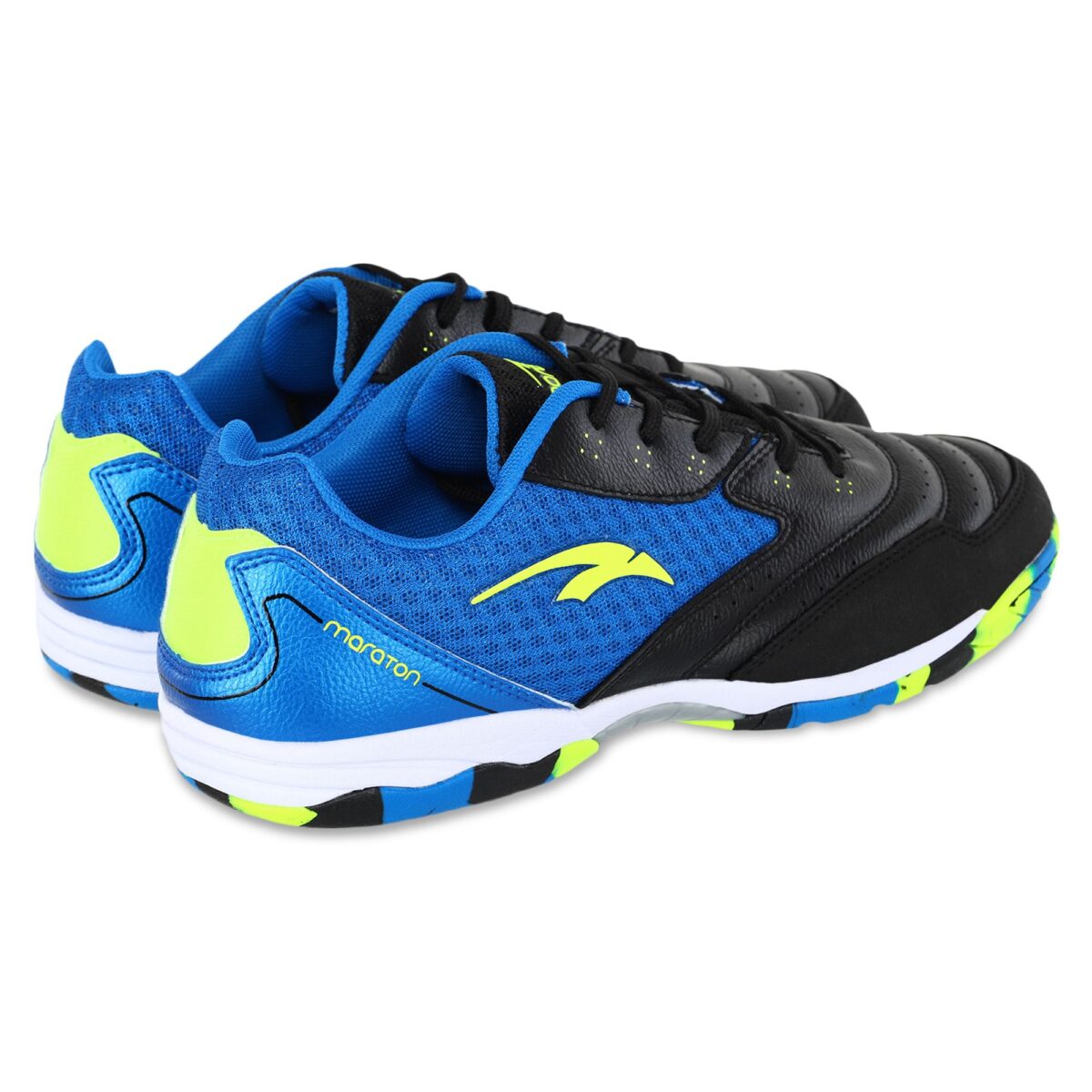 Мужские футзалки MARATON выполнены из прочного полиуретана с усилением в носке и пяточной зоне. Боковая панель и язычок выполнены из мембраны, которая обеспечивает постоянную циркуляцию воздуха и помогает сохранить ноги сухими и прохладными во время игры.