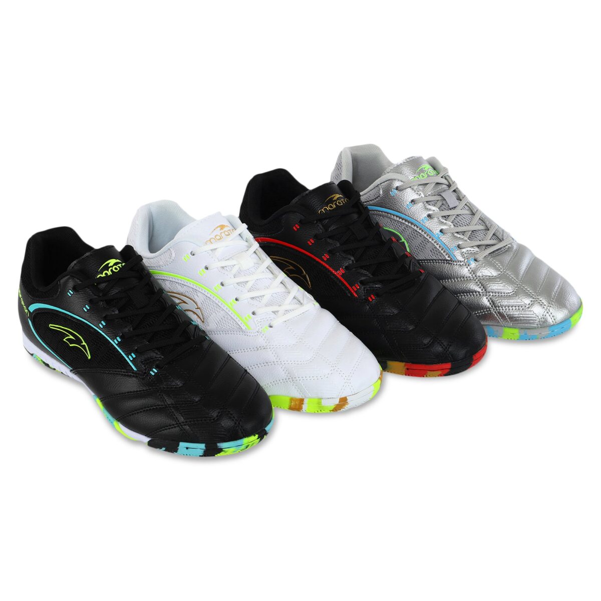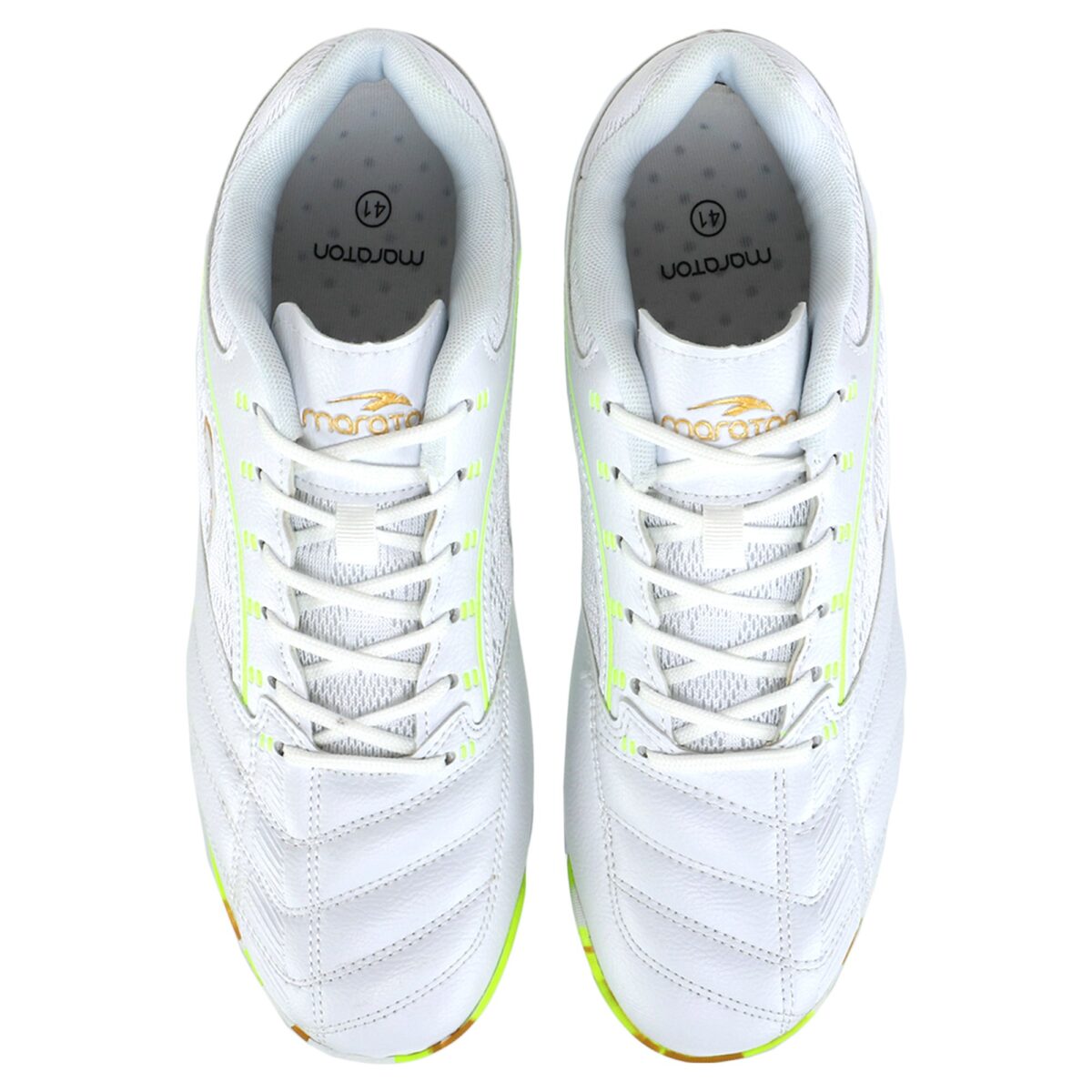 Дизайн кроссовок MARATON выполнен в классическом футбольном стиле. Яркие цветные акценты по бокам сделаны в тон подошве. Футзалки станут стильным дополнением повседневного гардероба.