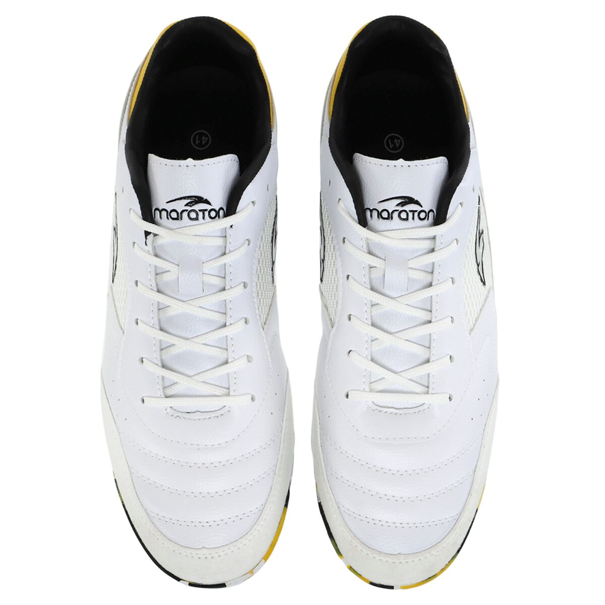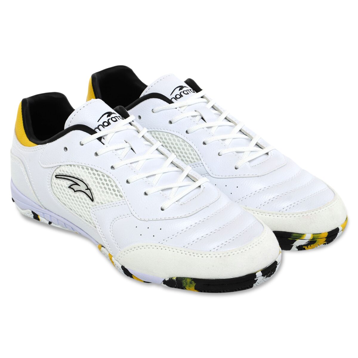 Обувь для зала MARATON предназначена для игры в мини-футбол. Мужские кроссовки отвечают всем требованиям игры: имеют плоскую подошву, легкий верх и амортизирующую стельку.