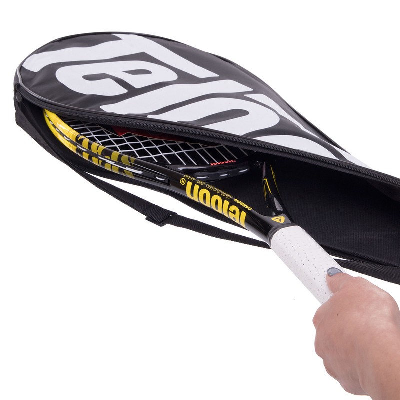 - Размер чехла полностью вмещает взрослую ракетку для большого тенниса.