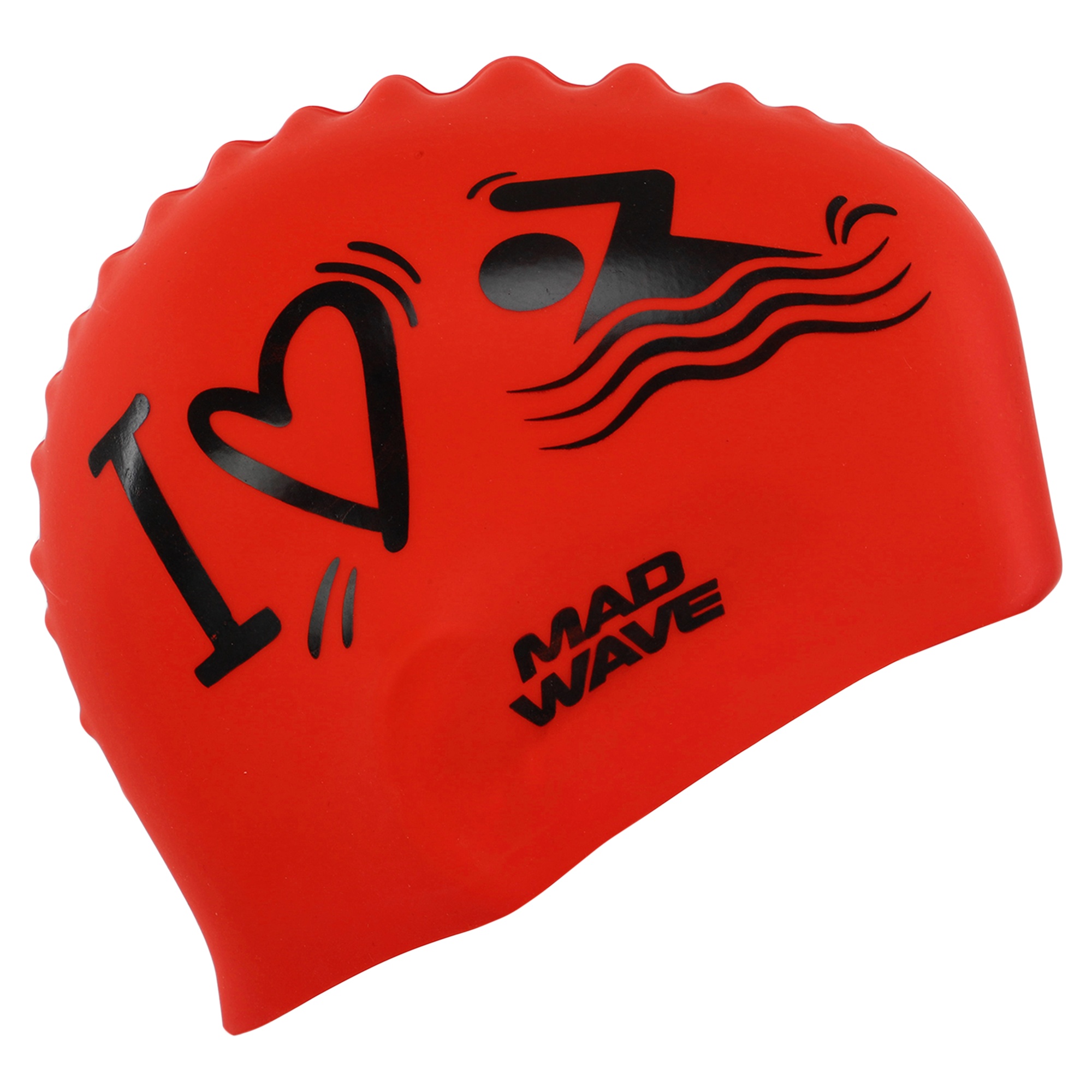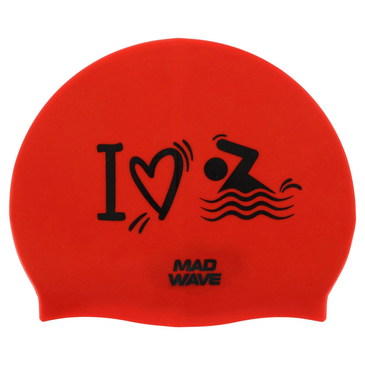 Шапочка для плавания силиконовая для взрослых MadWave LOVE SWIMMIMG красный