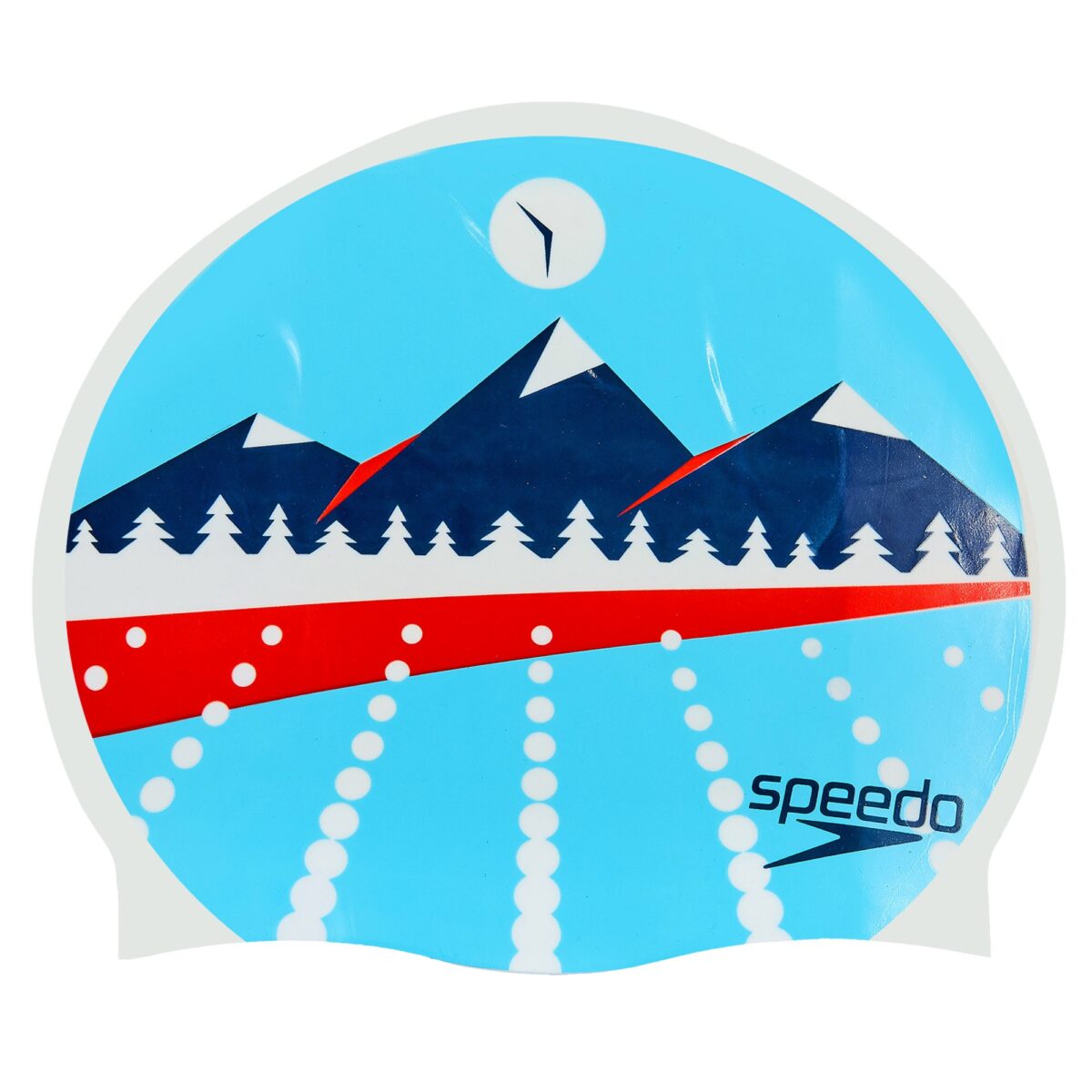 Шапочка для плавания силиконовая для взрослых SPEEDO SLOGAN PRINT LIGHT ADRIATIC голубой