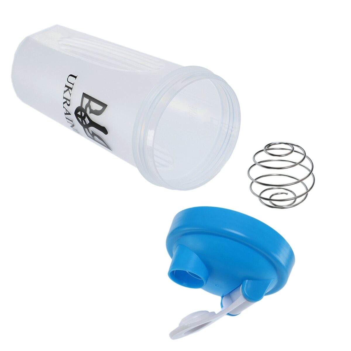 Контейнер шейкера изготовлен из прочного полипропилена, который не содержит вредных примесей и абсолютно безопасен для здоровья. Пластиковая крышка с резьбой обеспечивает отличную герметичность сосуда. Эти материалы не взаимодействуют с содержимым, поэтому коктейль не меняет свой естественный вкус. Широкая горловина контейнера и тиснёная мерная шкала на его боку позволяют быстро, легко и точно подготовить ингредиенты спортивного питания для смешивания. В комплекте идёт венчик из нержавеющей стали, который предотвращает комкование порошка при смешивании. Из шейкера можно пить прямо на ходу, не рискуя облить себя благодаря узкому носику в крышке, который закрывается откидной защёлкой.