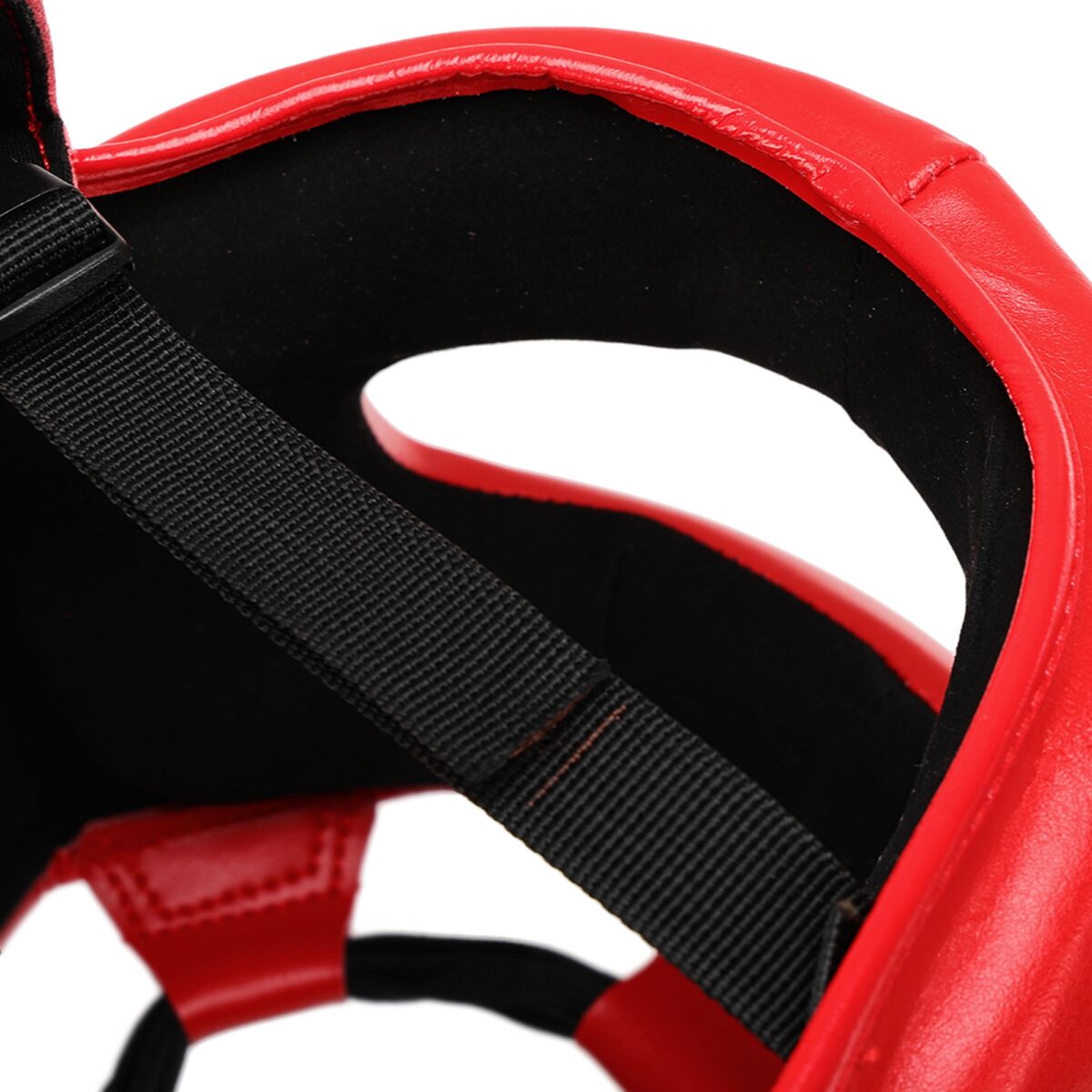 Анатомическая конструкция плотно облегает голову, не создавая дискомфорта. Встроенные вставки для защиты ушных раковин предотвращают случайные удары в эту уязвимую область. Усиленная амортизация помогает гасить даже самые мощные удары, уменьшая их воздействие на голову и шею. Регулируемая система крепления включает прочную стропу с карабином, позволяя легко подогнать шлем под индивидуальные параметры спортсмена.