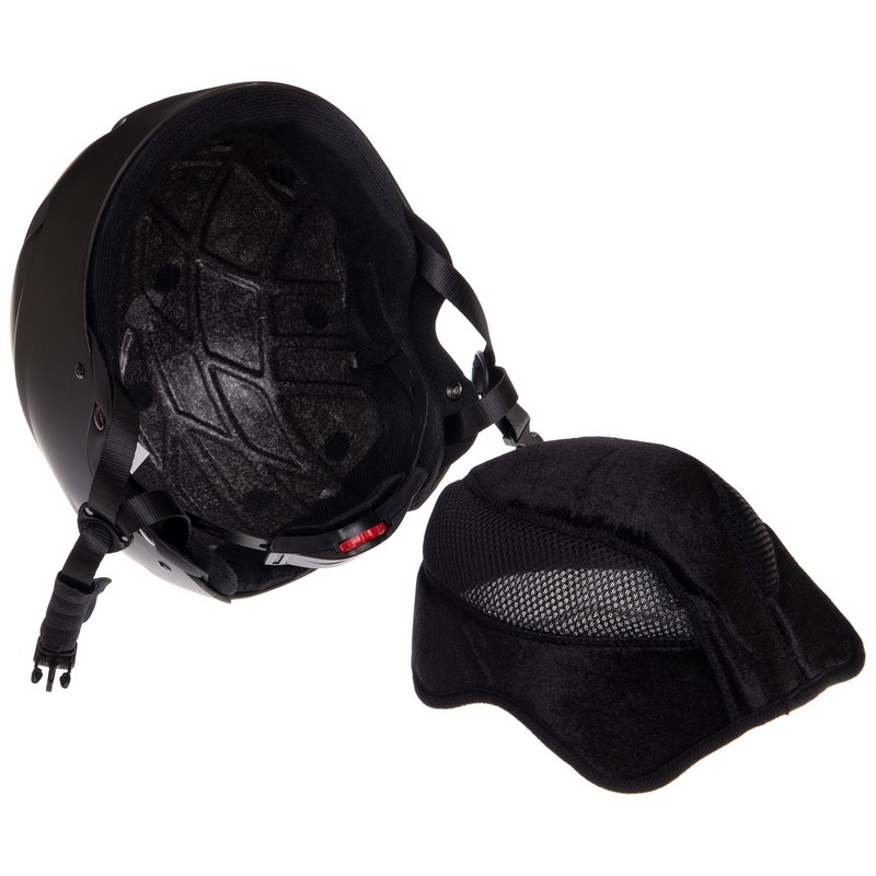 Выполнен с учётом анатомических особенностей головы и разработан так, чтобы надежно закрывать не только затылочную и лобную части, но и уши. Ушные вставки являются частью внутренней конструкции и изготовлены из плотной мягкой ткани с дышащими сетчатыми элементами. Они не только защищают от холода и ударов, но и не препятствуют восприятию звуков — это важно для ориентирования на трассе.