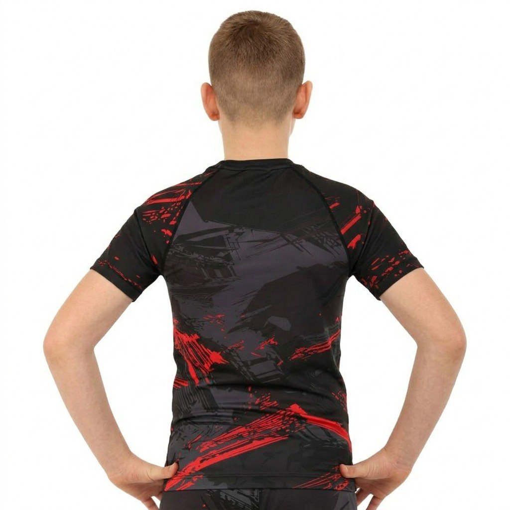 Материал из которого сшит костюм, имеет минимальный вес, высокую эластичность и отличную воздухопроницаемость. Во время носки он оказывает небольшое давление на мышцы и ткани спортсмена, стимулируя кровообращение и наполнение мышц кислородом. При этом одежда не утяжеляет и стимулирует естественные процессы терморегуляции. В комплект входит рашгард и шорты, выполненные в едином спортивном стиле.