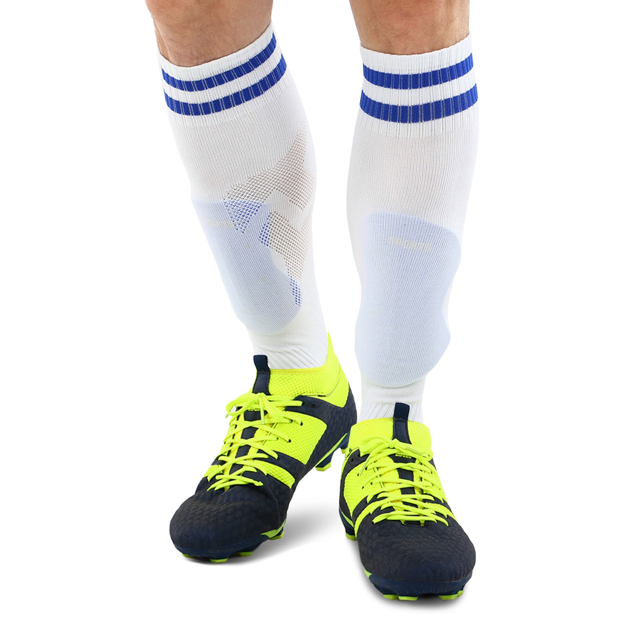 Щитки футбольные представляют собой жесткие накладки на переднюю часть ноги и предназначены для защиты голени игрока. Эргономичная конструкция обеспечивает высокий уровень защиты и комфорт спортсмена, щитки не мешают выполнять точные передачи и контролировать мяч при беге. Наружная поверхность щитков изготовлена из пластика с высокой прочностью, подкладка — из EVA. Оба материала очень легкие и не создают дополнительной нагрузки на ноги. Во время приема мяча, летящего на большой скорости, наружная поверхность щитков принимает на себя всю нагрузку, а мягкий внутренний слой поглощает ударную энергию. Дизайн щитков выполнен в современном стиле и позволяет комбинировать экипировку с формой разного цвета.