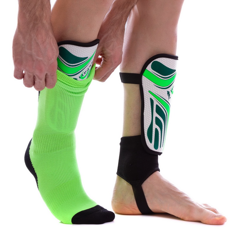 Для защиты голени во время игры в футбол можно использовать щитки с резинками фиксации. Для их крепления не нужно использовать держатели.