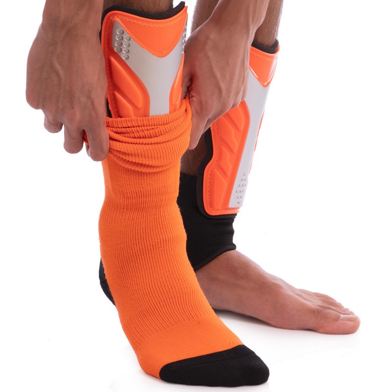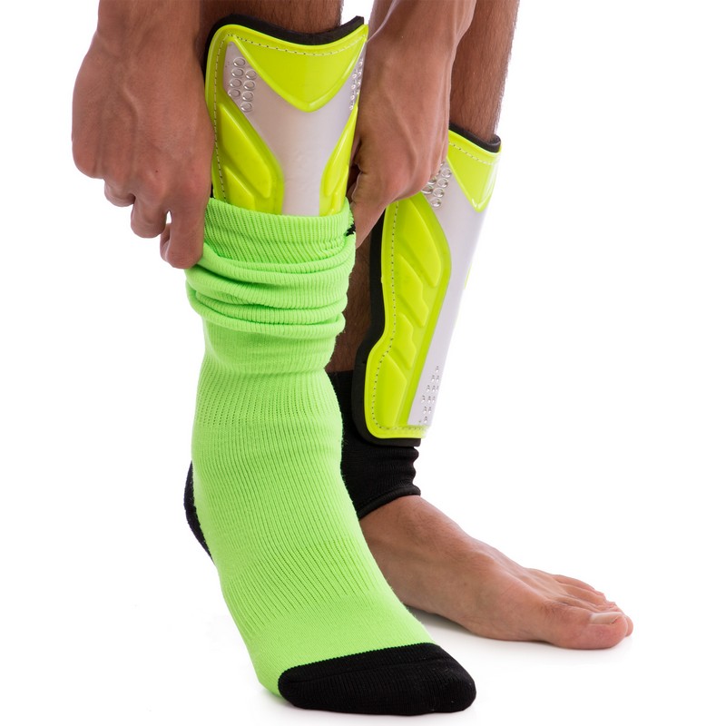 Для защиты голени во время игры в футбол можно использовать щитки с резинками фиксации. Для их крепления не нужно использовать держатели.