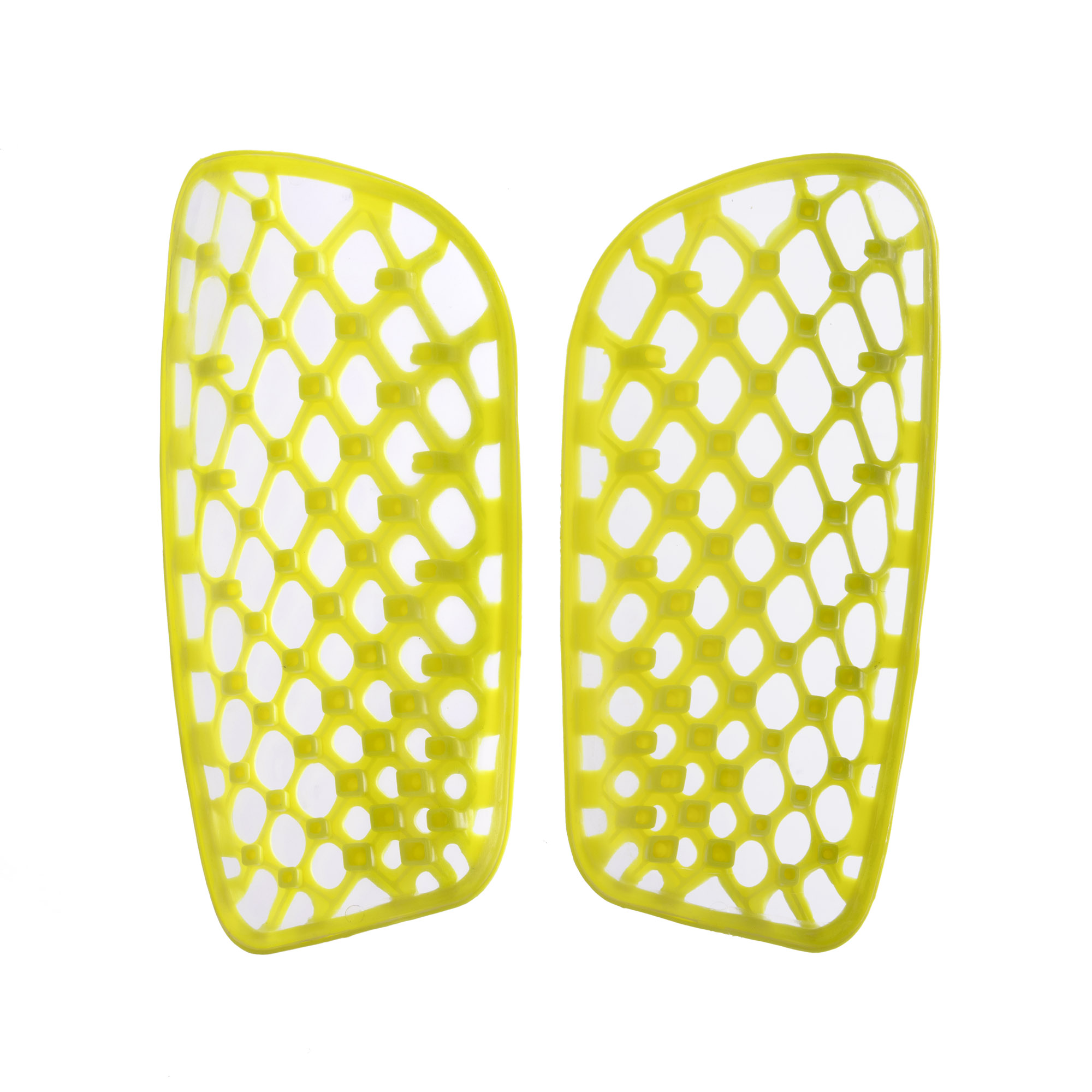 Тип: футбольные щитки. Материал: пластик, этиленвинилацетат. Размер: M (19,5 см). Цвет: синий, салатовый, оранжевый, желтый. Назначение: для защиты голени от травм во время игры в футбол. Футбольные щитки изготовлены из ударопрочного пластика и предназначены для защиты голени футболиста от ударов. При ударе в щиток нагрузка распределяется равномерно по всей его поверхности, риск серьезной травмы снижается. Обратная сторона щитка покрыта мягким, гибким материалом — этиленвинилацетатом (EVA). Материал амортизирует удары и обеспечивает дополнительный комфорт. Для крепления щитков данного типа можно использовать резинку или держатели. Они в комплект поставки не входят. Преимущества футбольных щитков: