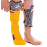 Для защиты голени во время игры в футбол можно использовать щитки с резинками фиксации. Для их крепления не нужно использовать держатели.