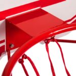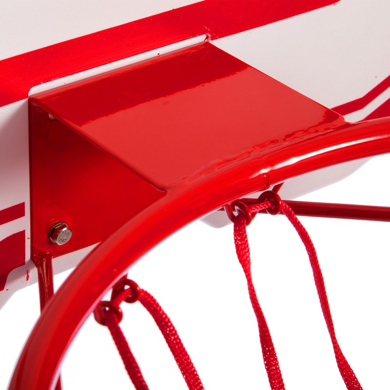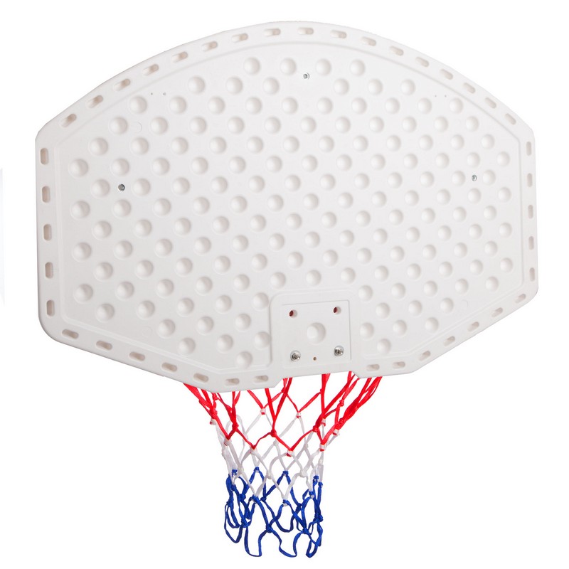 Баскетбольный щит имеет нестандартную форму и укомплектован кольцом и сеткой. Сетка имеет трёхцветный дизайн и выполнена из нейлона. Её наличие позволяет зафиксировать попадание мяча в корзину. Само кольцо имеет диаметр 45 см, что является стандартным для взрослых корзин. Такое кольцо совместимо с мячом 7 размера, однако также можно бросать в него и мячи поменьше. Несмотря на нестандартные размеры самого щита, на нём присутствует классическая разметка в виде квадрата над корзиной. Наличие такой разметки позволяет легче прицелиться из различных частей площадки и увеличить вероятность попадания в корзину. Щит выполнен из прочного полиэтилена и неприхотлив к условиям эксплуатации.