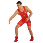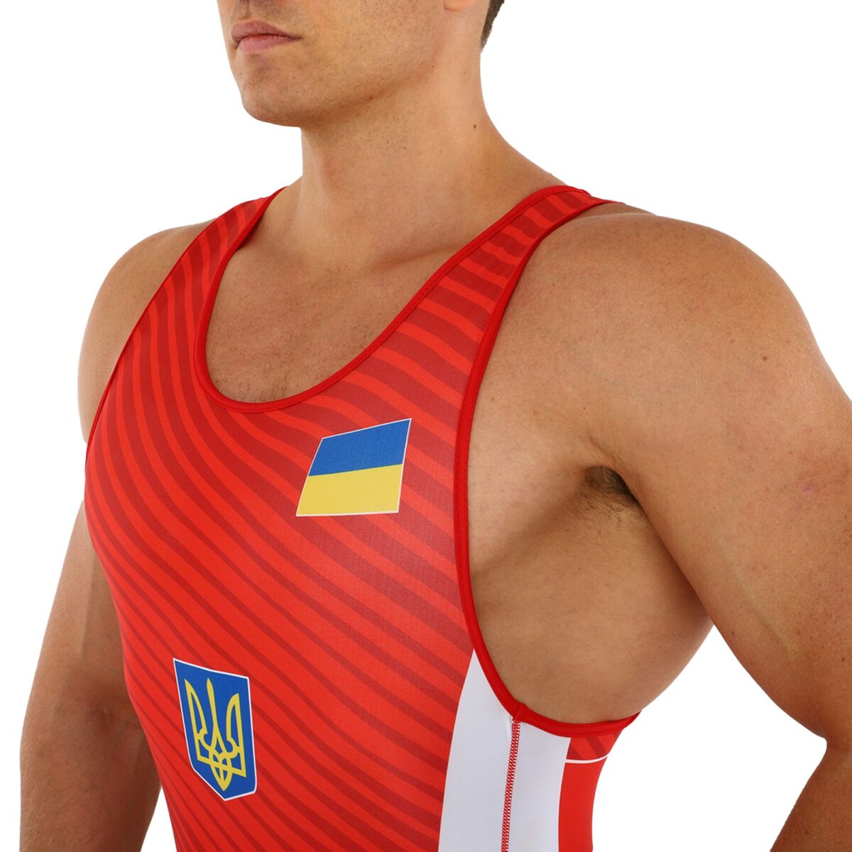Трико UKRAINE имеет патриотичный дизайн и выполнено в классических для борьбы цветах — красном и синем. Экипировка изготовлена из прочной синтетической ткани, которая имеет высокую прочность на разрыв. Также синтетические материалы отлично отводят влагу и обладают хорошей воздухопроницаемостью. Такая экипировка обеспечивает комфорт во время самых интенсивных тренировок и соревнований. Продуманное расположение швов и крой трико дарят спортсмену полную свободу движений. Швы не натирают в местах соприкосновения с кожей. Трико закрывает ноги до коленей. Экипировка оставляет плечи открытыми, верх изготовлен в виде майки.